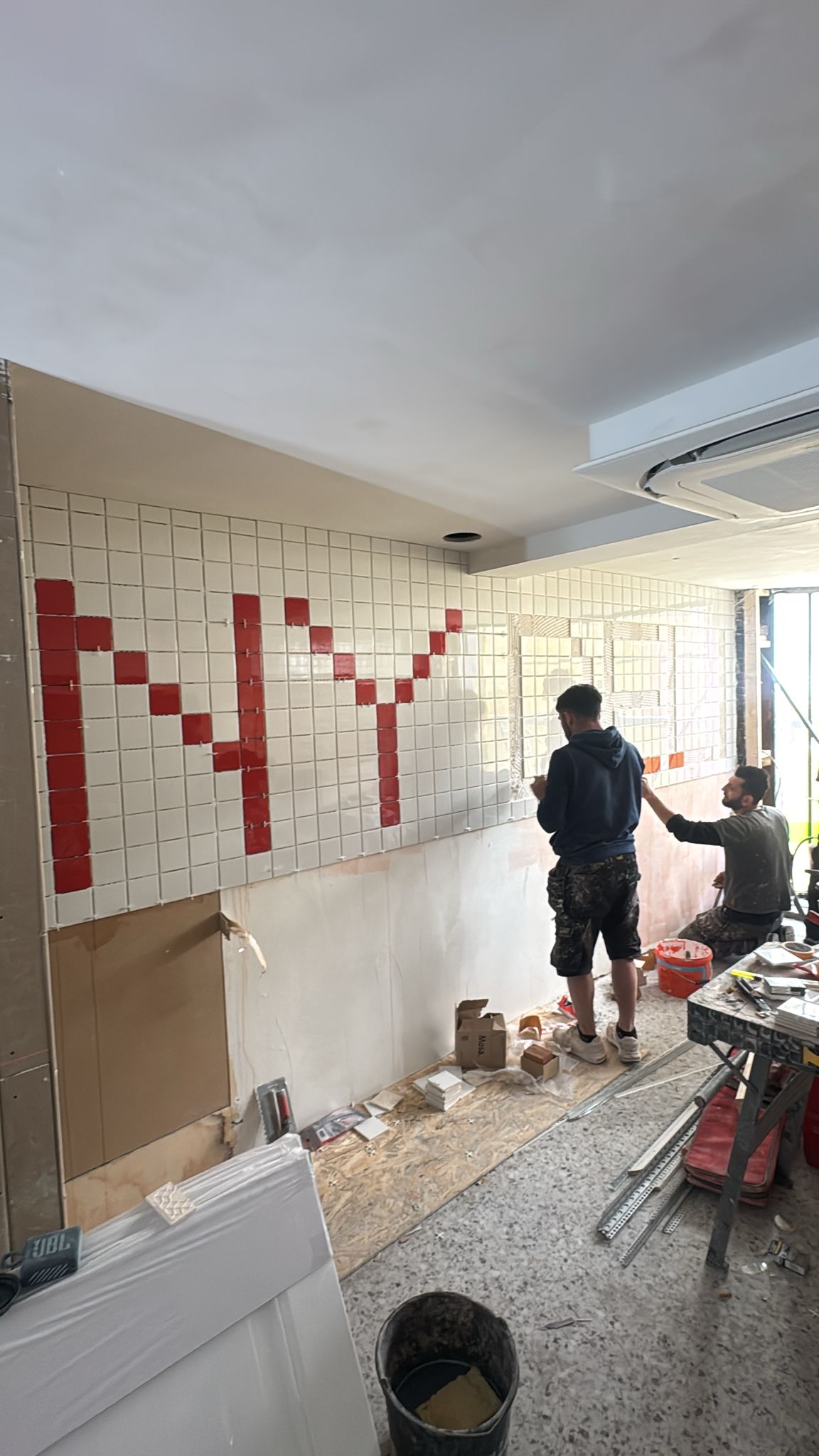 Interieur en Design: De horecaruimte is voorzien van strak stucwerk op muren en plafonds, afgewerkt met professioneel schilderwerk. Wij realiseerden duurzame, gemakkelijk te onderhouden vloeren en hoogwaardig betegelde wanden in de natte en operationele ruimtes. De zitplaatsen zijn niet alleen comfortabel, maar ook ontworpen voor maximale capaciteit en duurzaamheid.